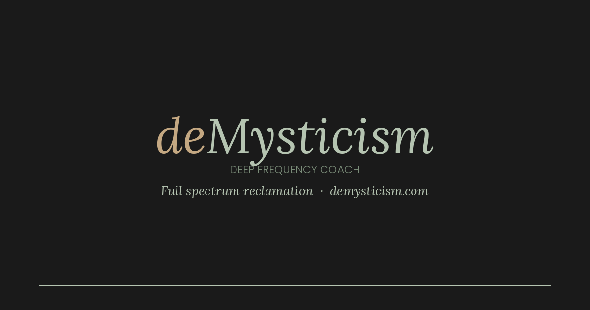 Through deMysticism, I've built a practice that honors both the science and the sacred, because this isn't an either/or choice. It's where knowing is uncovered, and feeling is natural. Deep Frequency Living is the full expression of my life's work so far: sound, energy, movement, and intuition, held together in one coherent practice, built entirely around you.